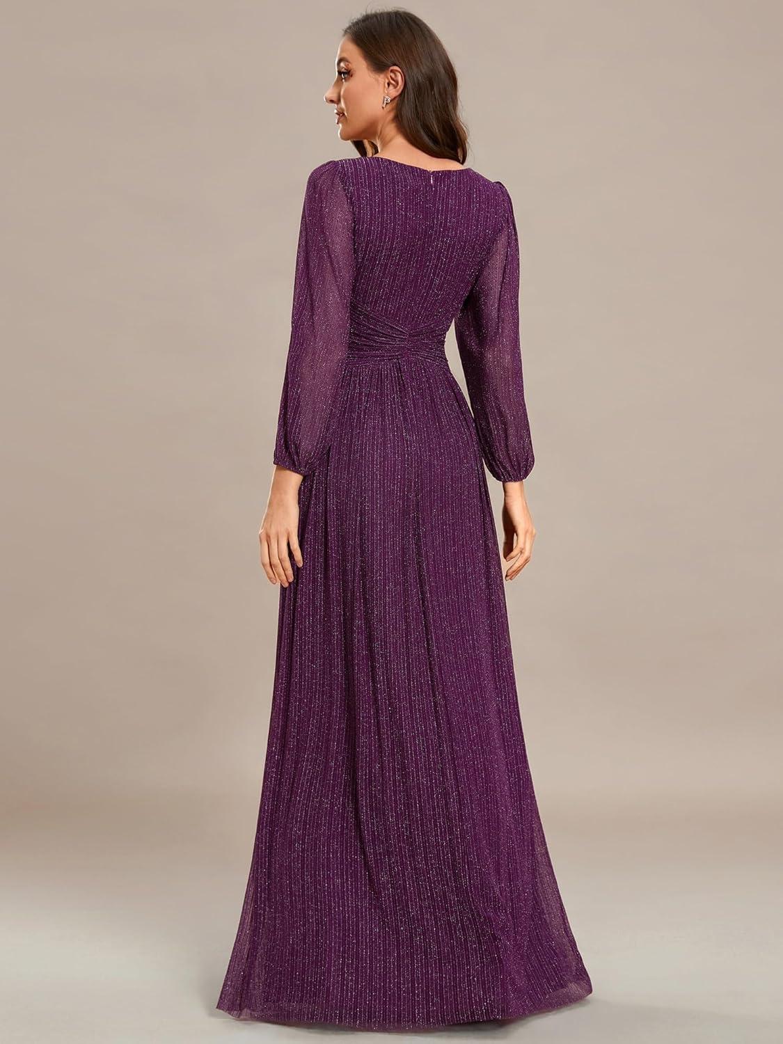 Ever-Pretty Women’s A-Line Formal Wedding Guest Dresses Long Lantern Sleeves Floor Length Glitter Evening Gowns(Sparkling Grape)