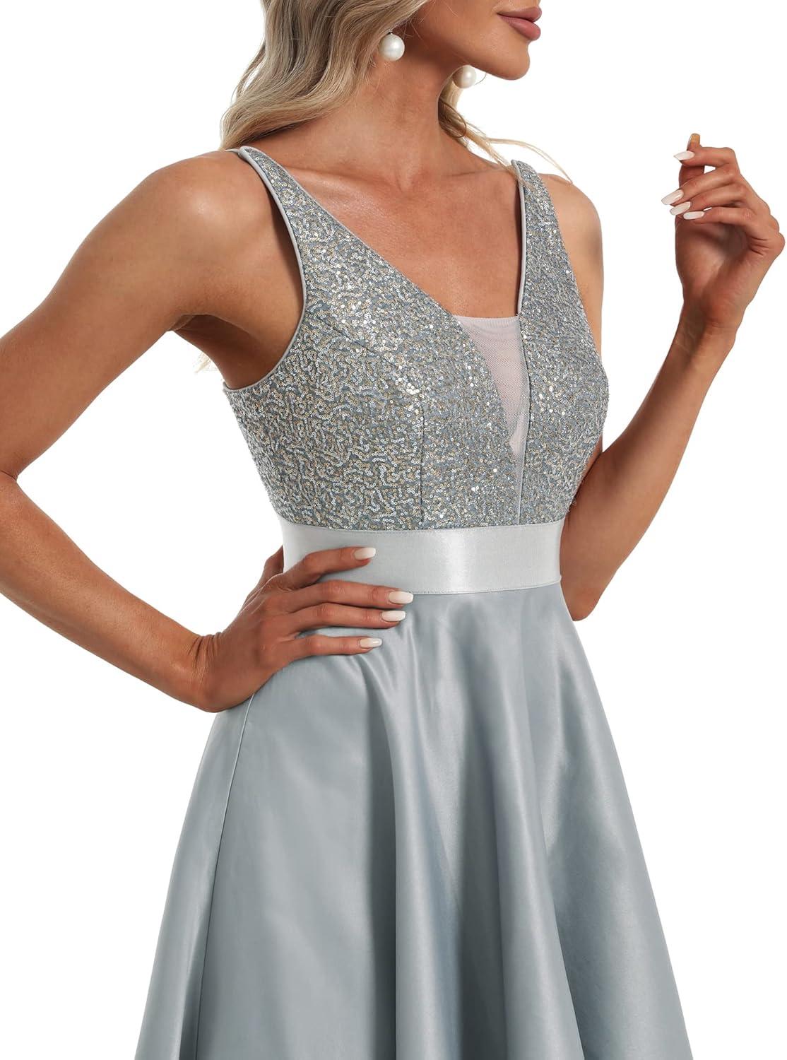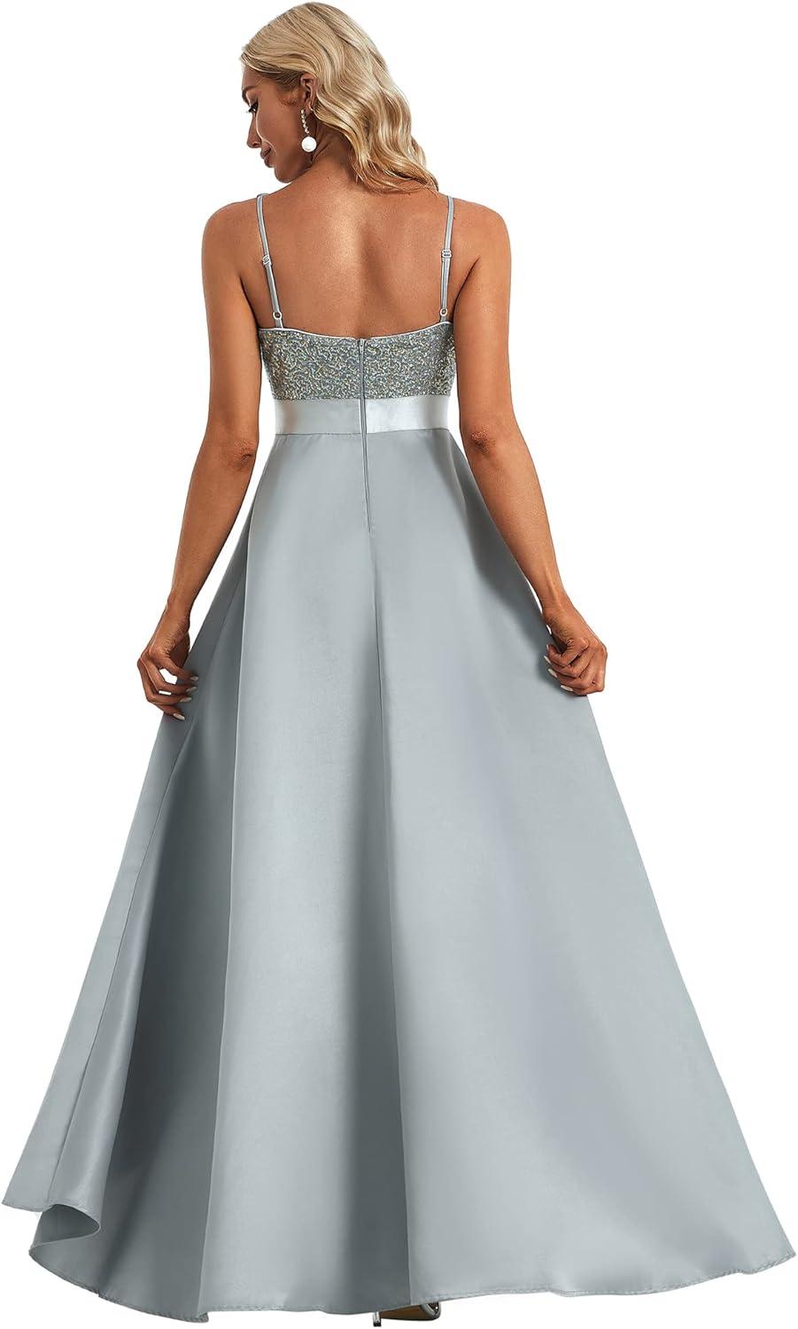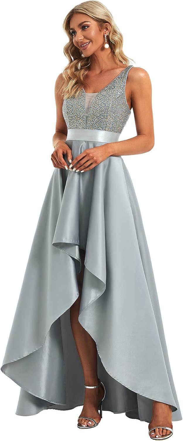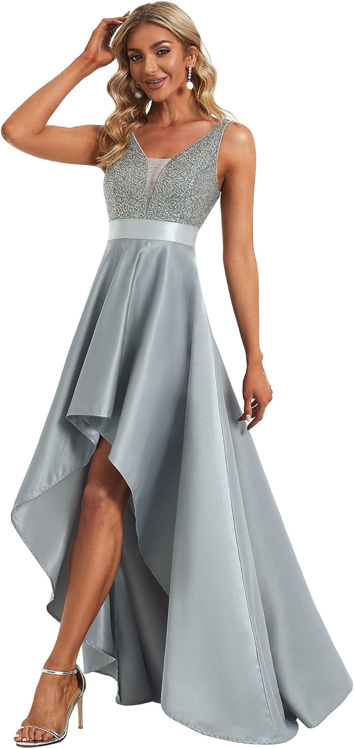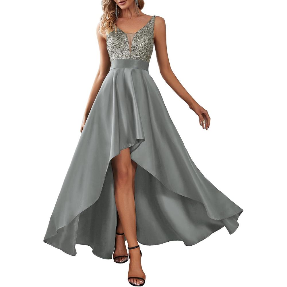Ever-Pretty Women’s Bridesmaid Dresses Summer Glitter V-Neck A-line High-Low Wedding Guest Dresses 00667(Grey)