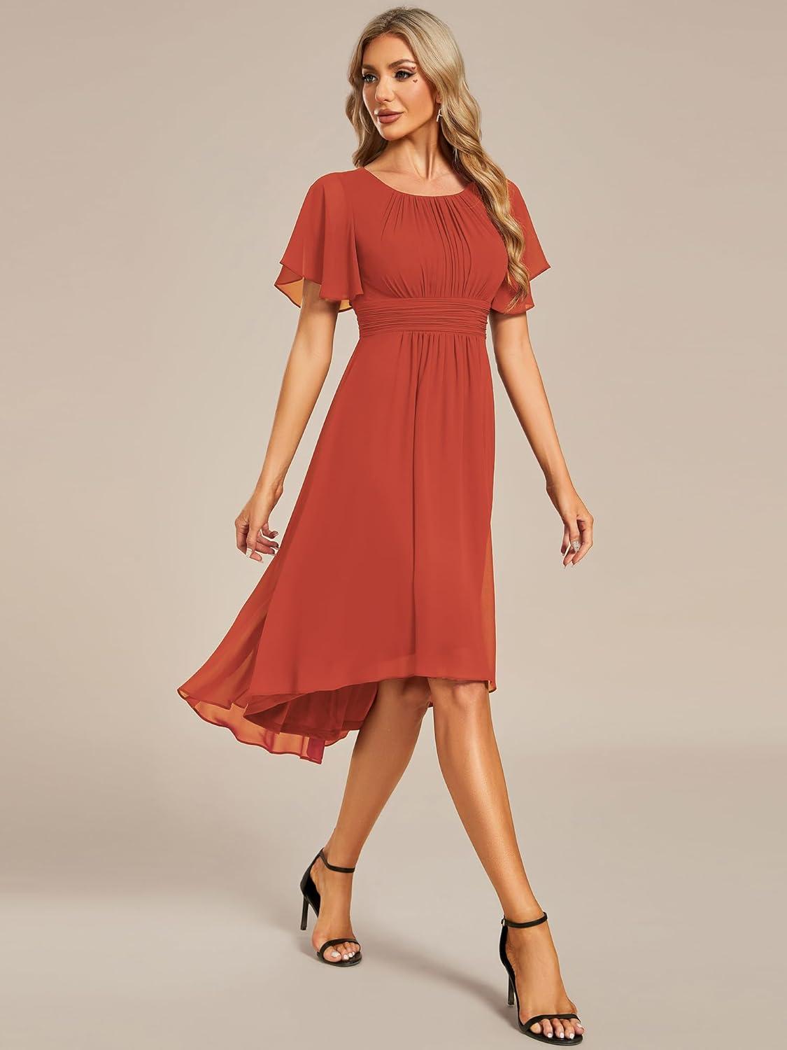 Ever-Pretty Women’s Chiffon Crew Neck Empire Waist Short Sleeve Semi Formal Dresses Wedding Guest Dress 02053(Burnt Orange)