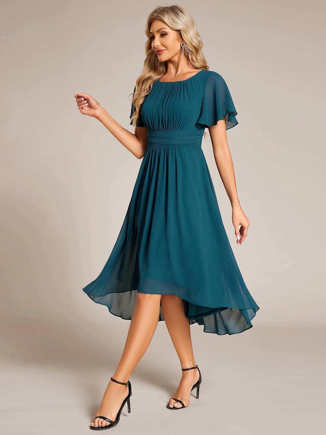 Ever-Pretty Women’s Chiffon Crew Neck Empire Waist Short Sleeve Semi Formal Dresses Wedding Guest Dress 02053(Teal)