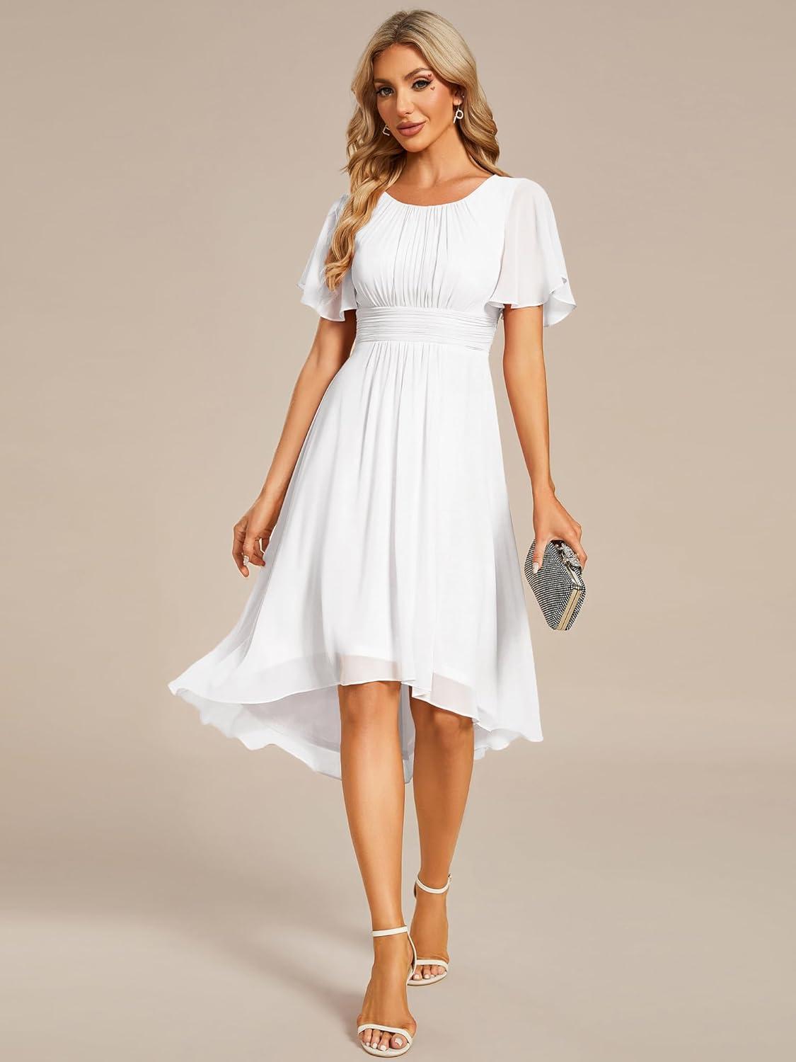 Ever-Pretty Women’s Chiffon Crew Neck Empire Waist Short Sleeve Semi Formal Dresses Wedding Guest Dress 02053(White)