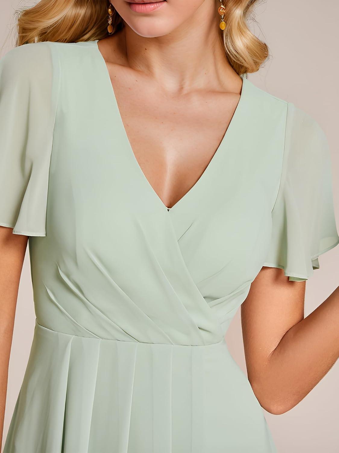 Ever-Pretty Women's Chiffon Formal Dresses V Neck Ruffle Sleeves Pleated High Low Wedding Guest Dress 2084(A-mint Green)