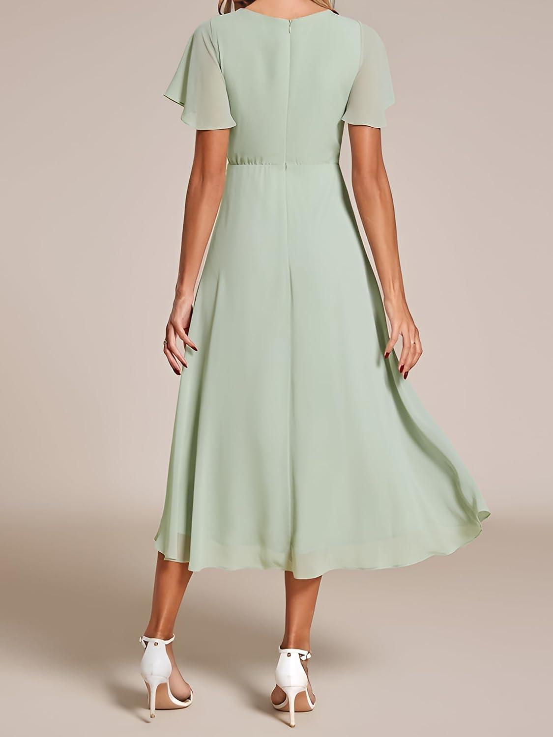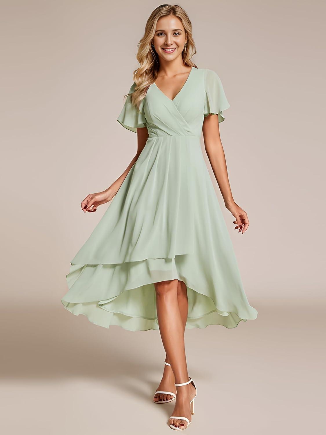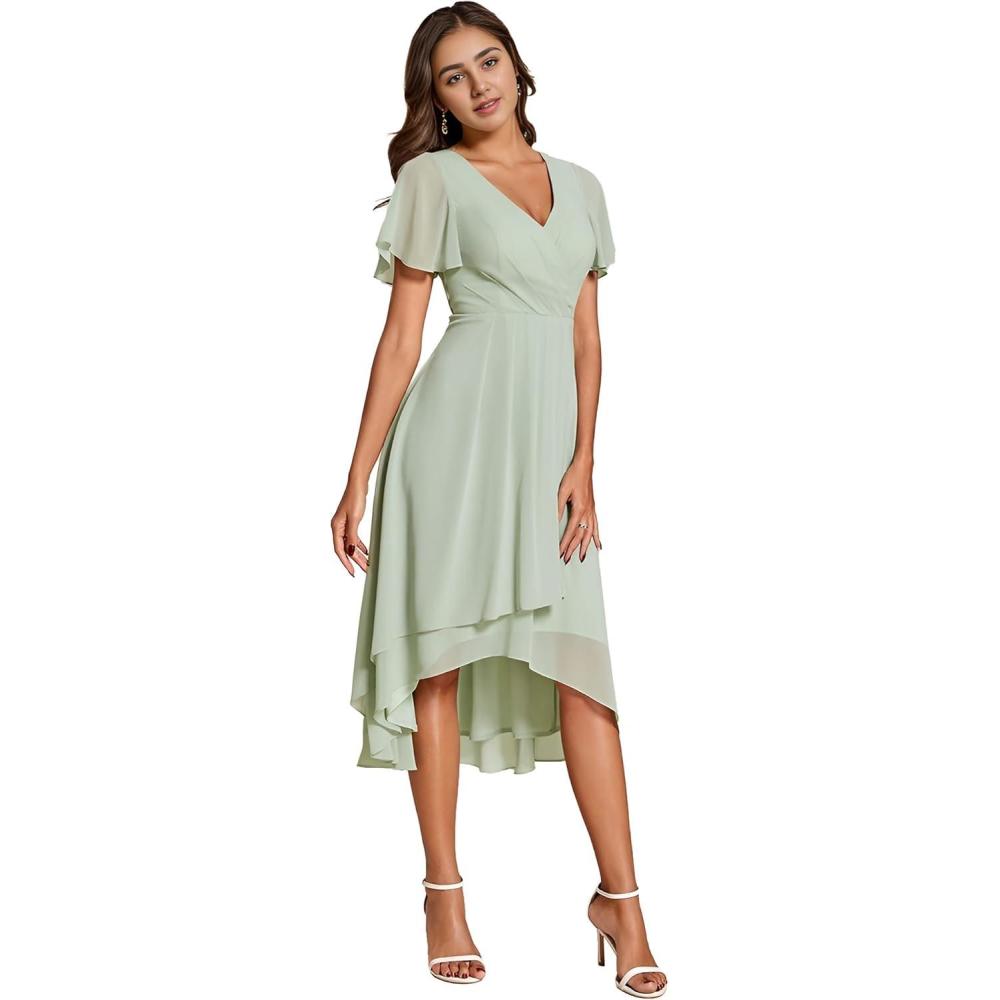 Ever-Pretty Women’s Chiffon Formal Dresses V Neck Ruffle Sleeves Pleated High Low Wedding Guest Dress 2084(A-mint Green)