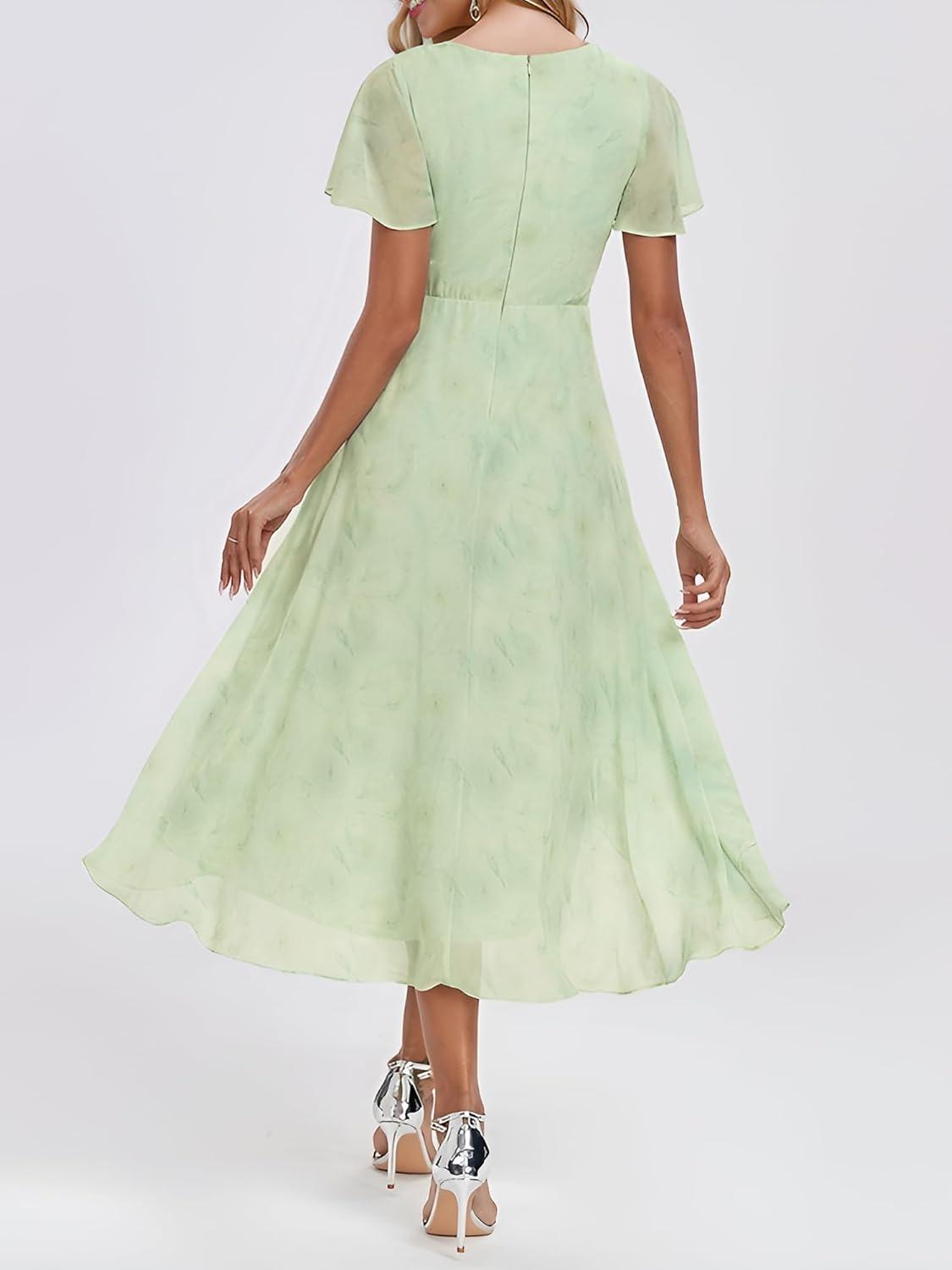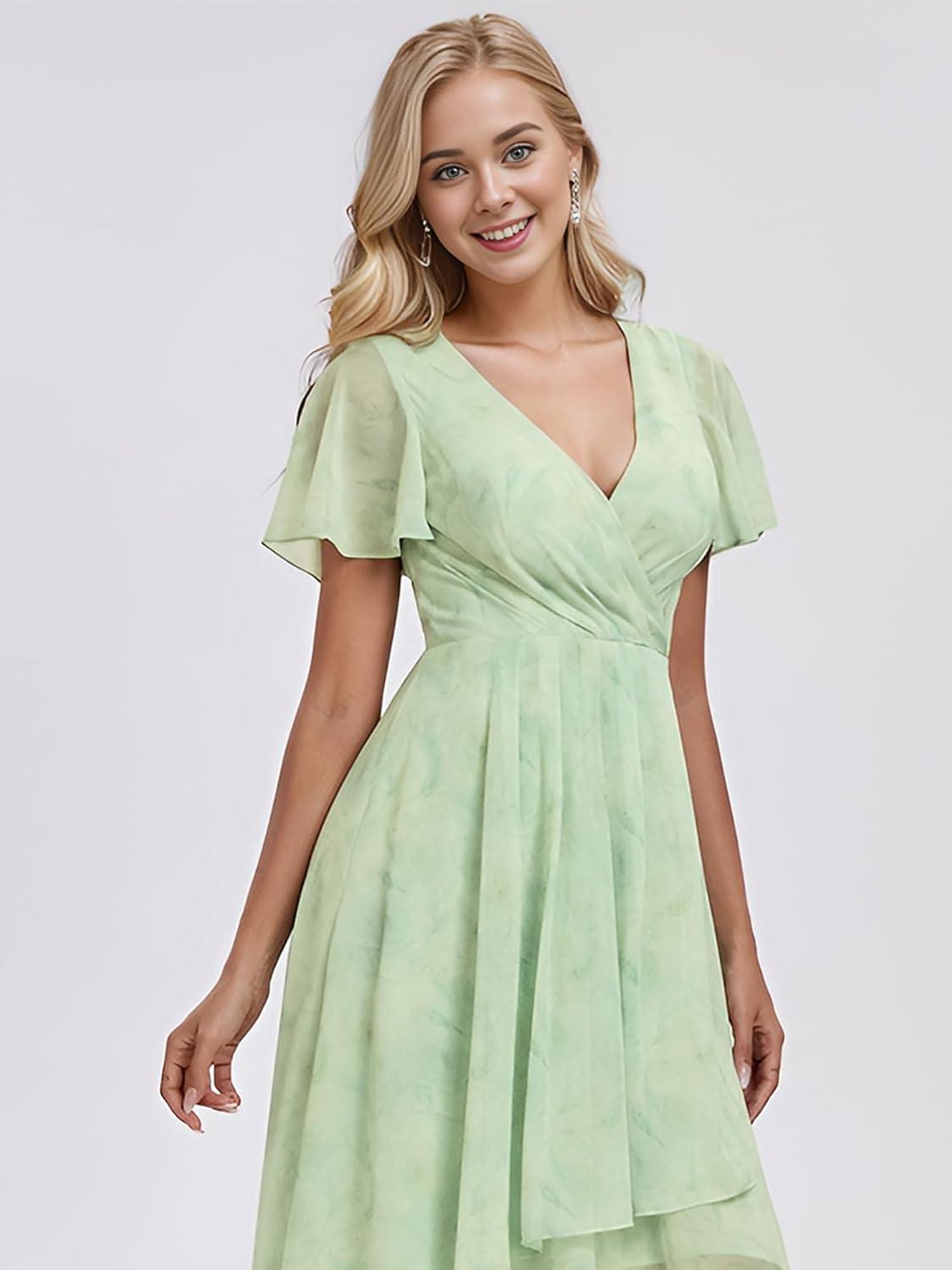 Ever-Pretty Women’s Chiffon Formal Dresses V Neck Ruffle Sleeves Pleated High Low Wedding Guest Dress 2084(Light Green Roses)