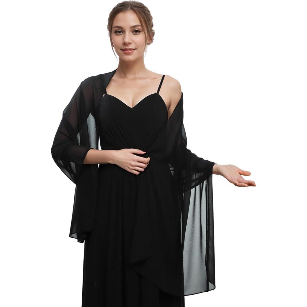 Ever-Pretty Women’s Chiffon Sheer Wrap Shawl for Evening Dresses Wedding Party 02333(Black)