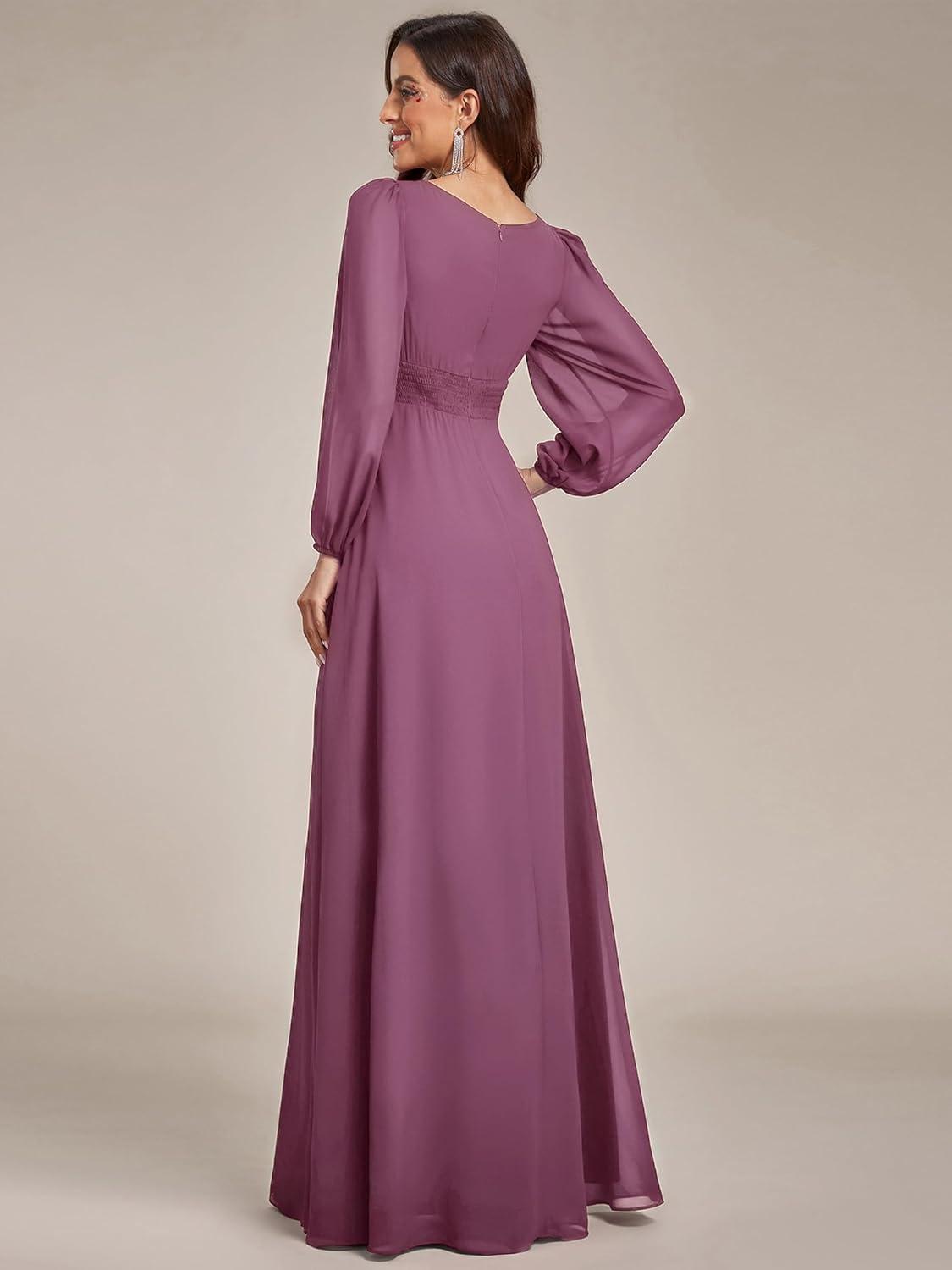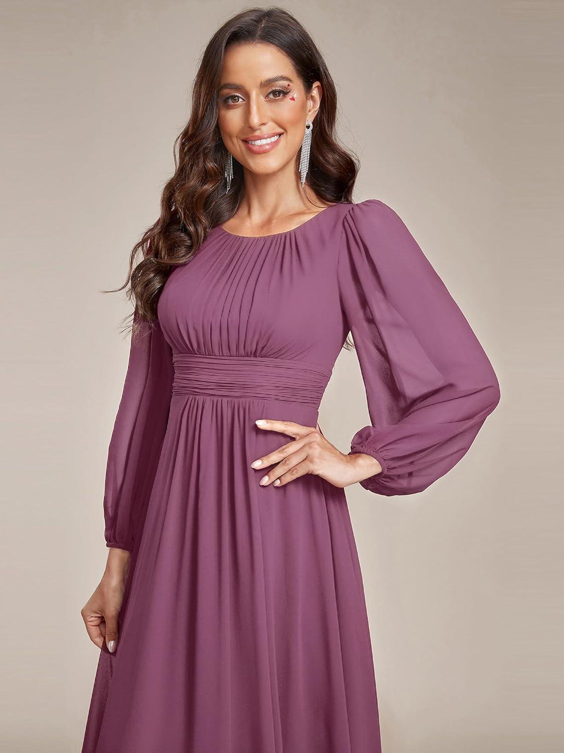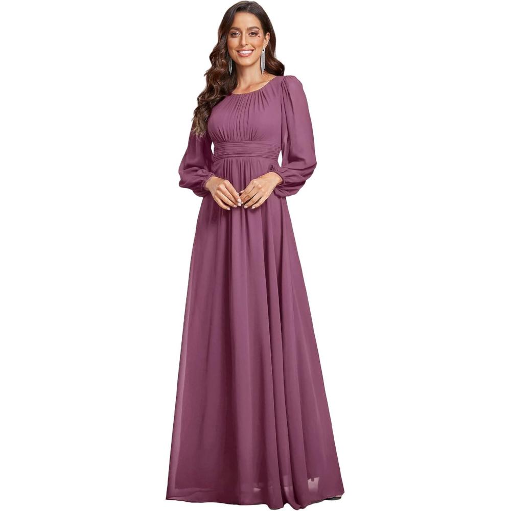 Ever-Pretty Women’s Crewneck Long Lantern Sleeves Floor Length A-Line Pleated Chiffon Formal Dress 0106B(Damson)