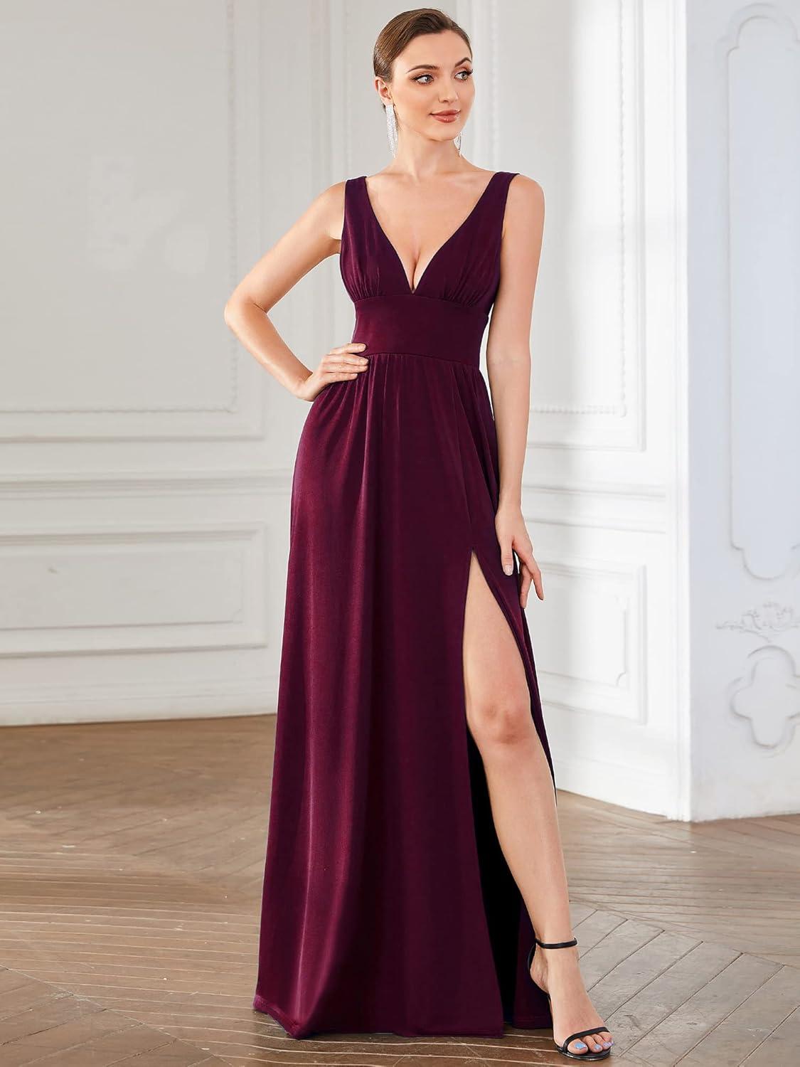 Ever-Pretty Women’s Deep V-Neck Sleeveless Side Slit Floor Length Bridesmaid Wedding Guest Dress 0168B(Mulberry)
