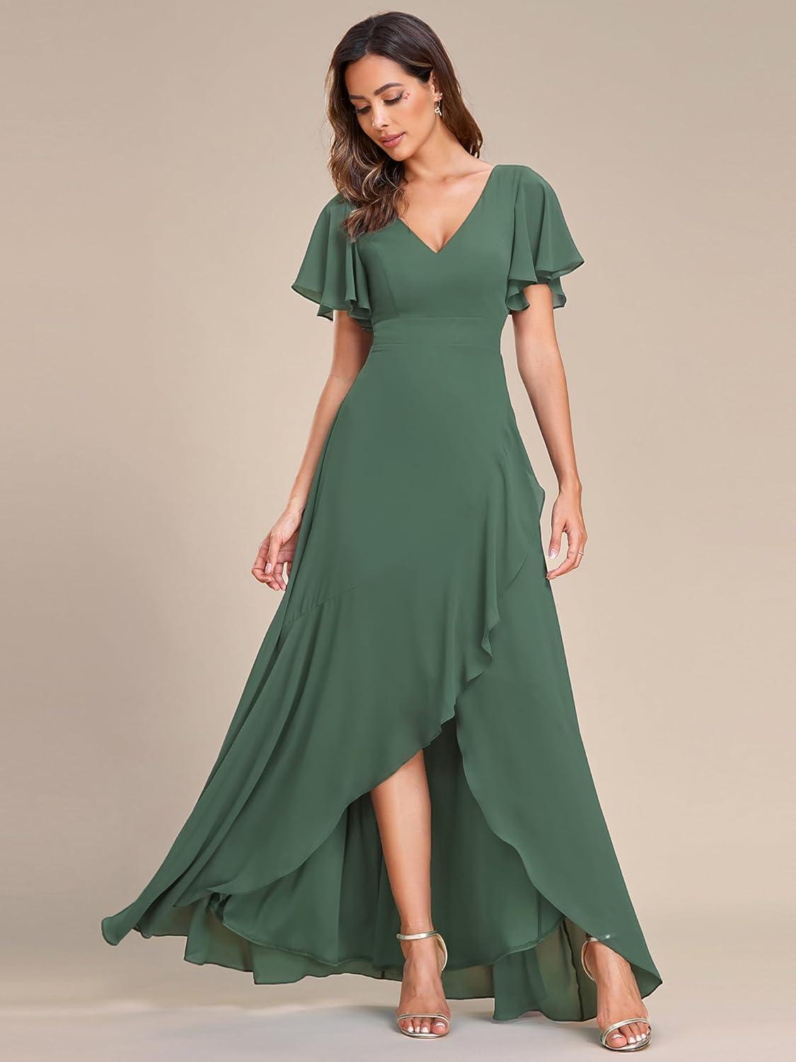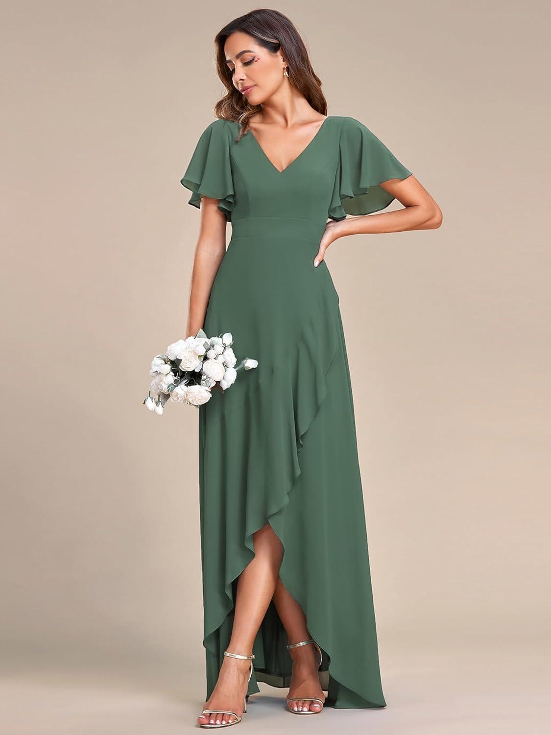 Ever-Pretty Women's Double V Neck A Line Ruffle Hem Backless High Low Chiffon Bridesmaid Dresses Vestidos Elegante 01749(Eucalyptus Green)