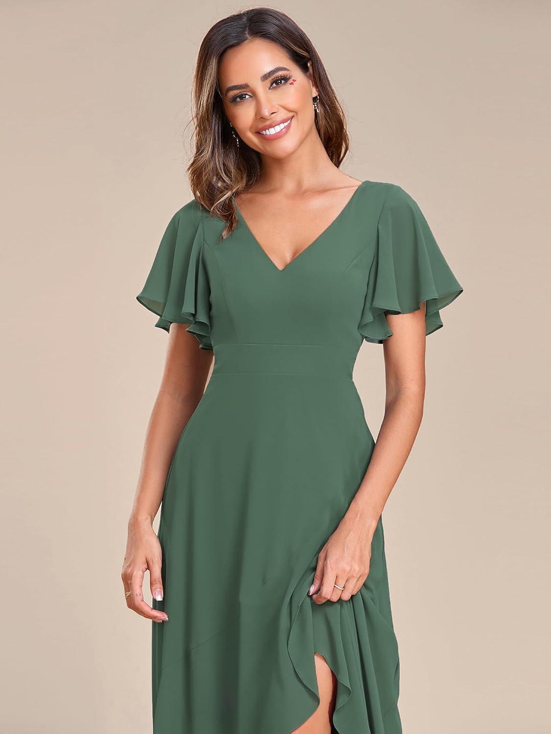 Ever-Pretty Women’s Double V Neck A Line Ruffle Hem Backless High Low Chiffon Bridesmaid Dresses Vestidos Elegante 01749(Eucalyptus Green)
