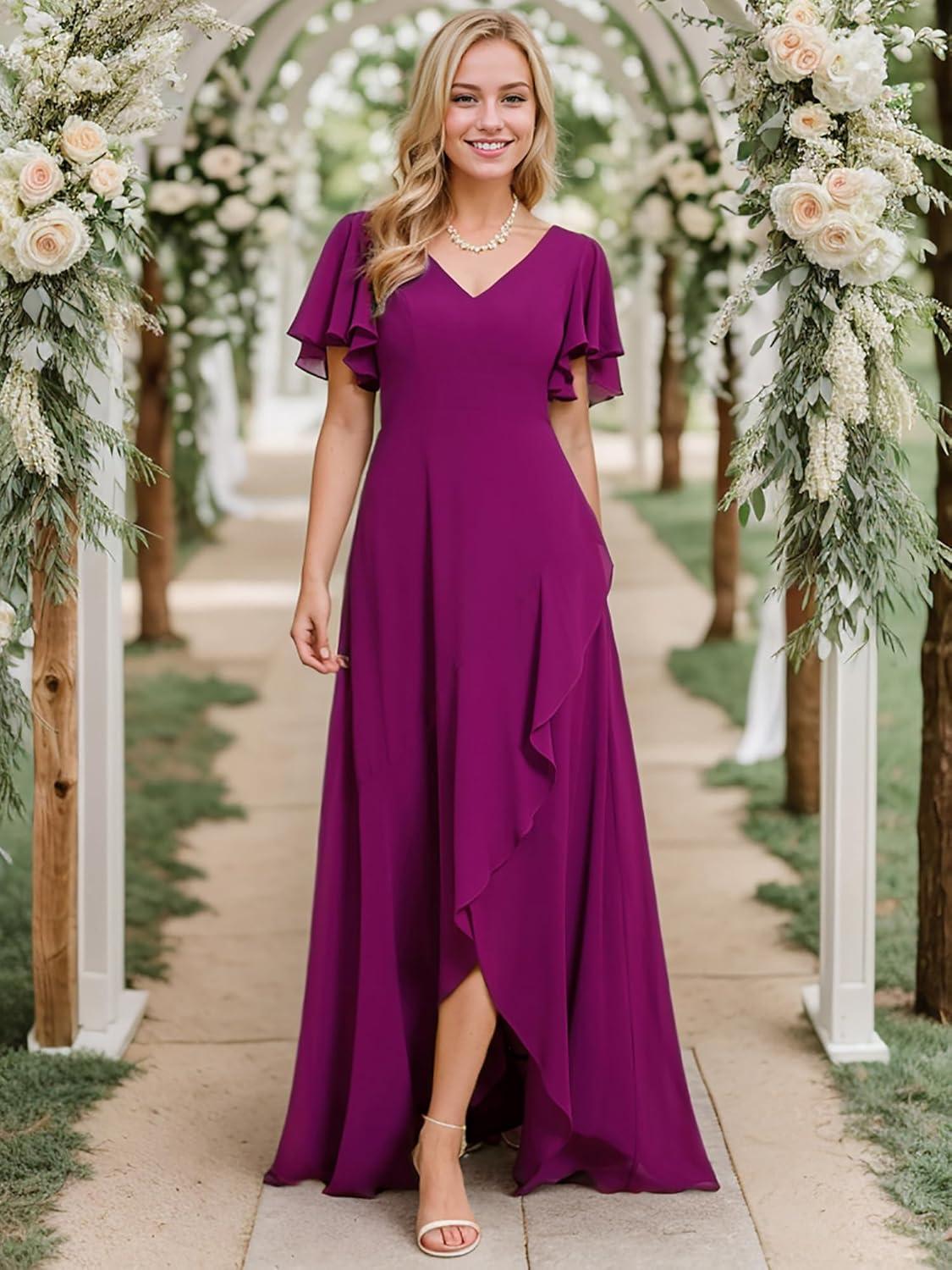 Ever-Pretty Women’s Double V Neck A Line Ruffle Hem Backless High Low Chiffon Bridesmaid Dresses Vestidos Elegante 01749(Orchid)