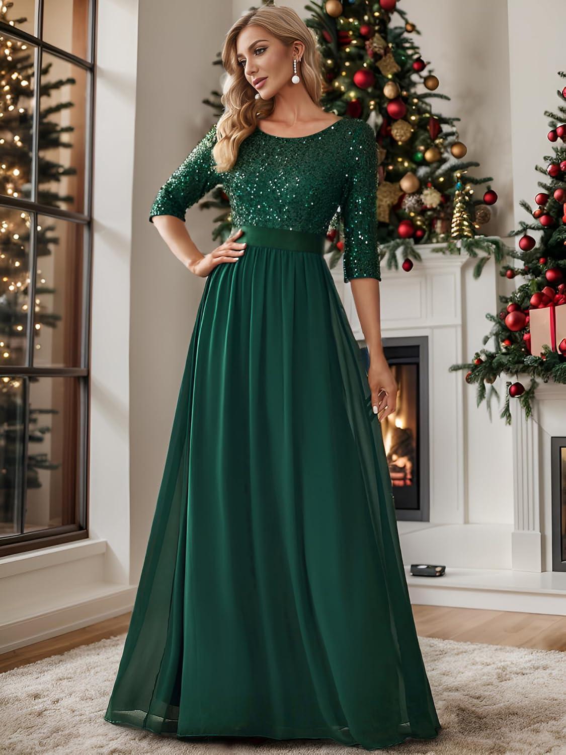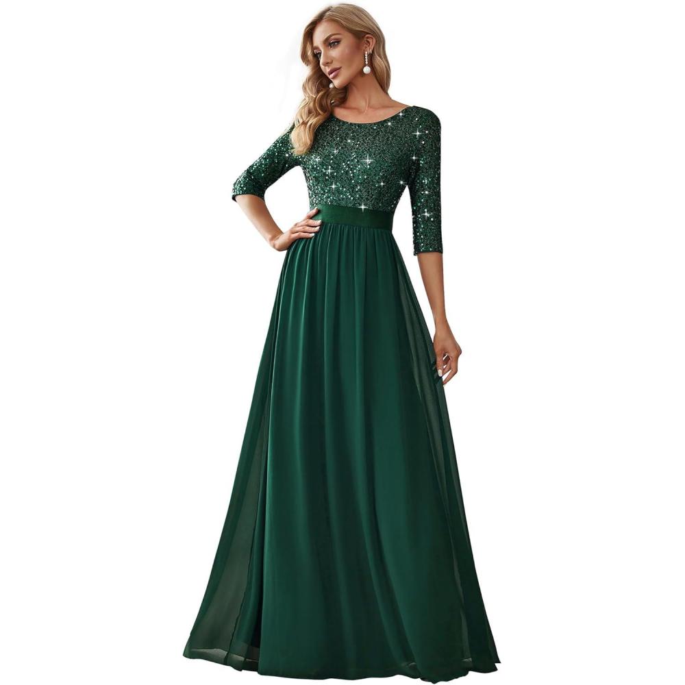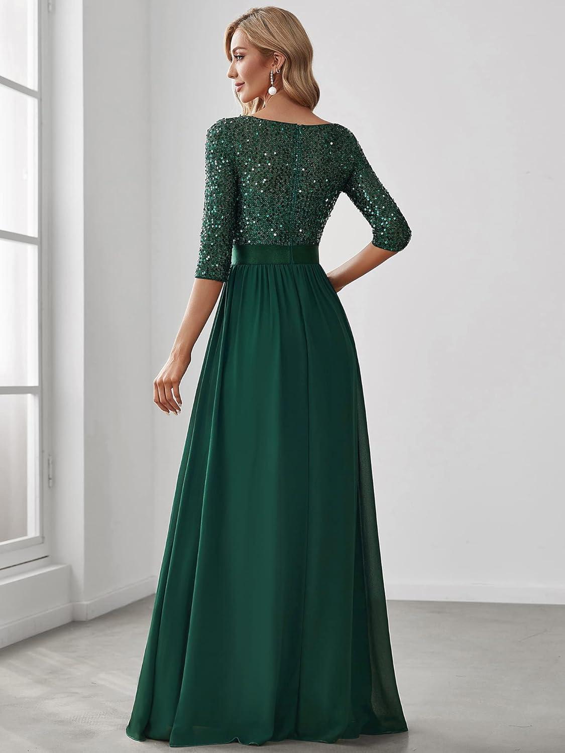 Ever-Pretty Women’s Elegant A Line Crew Neck Half Sleeve Sequin Evening Dress 00683(Dark Green)