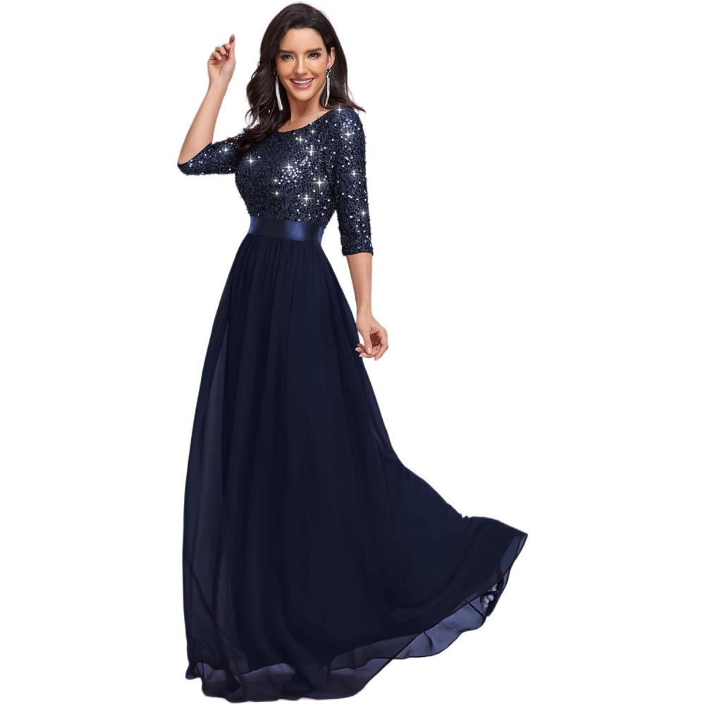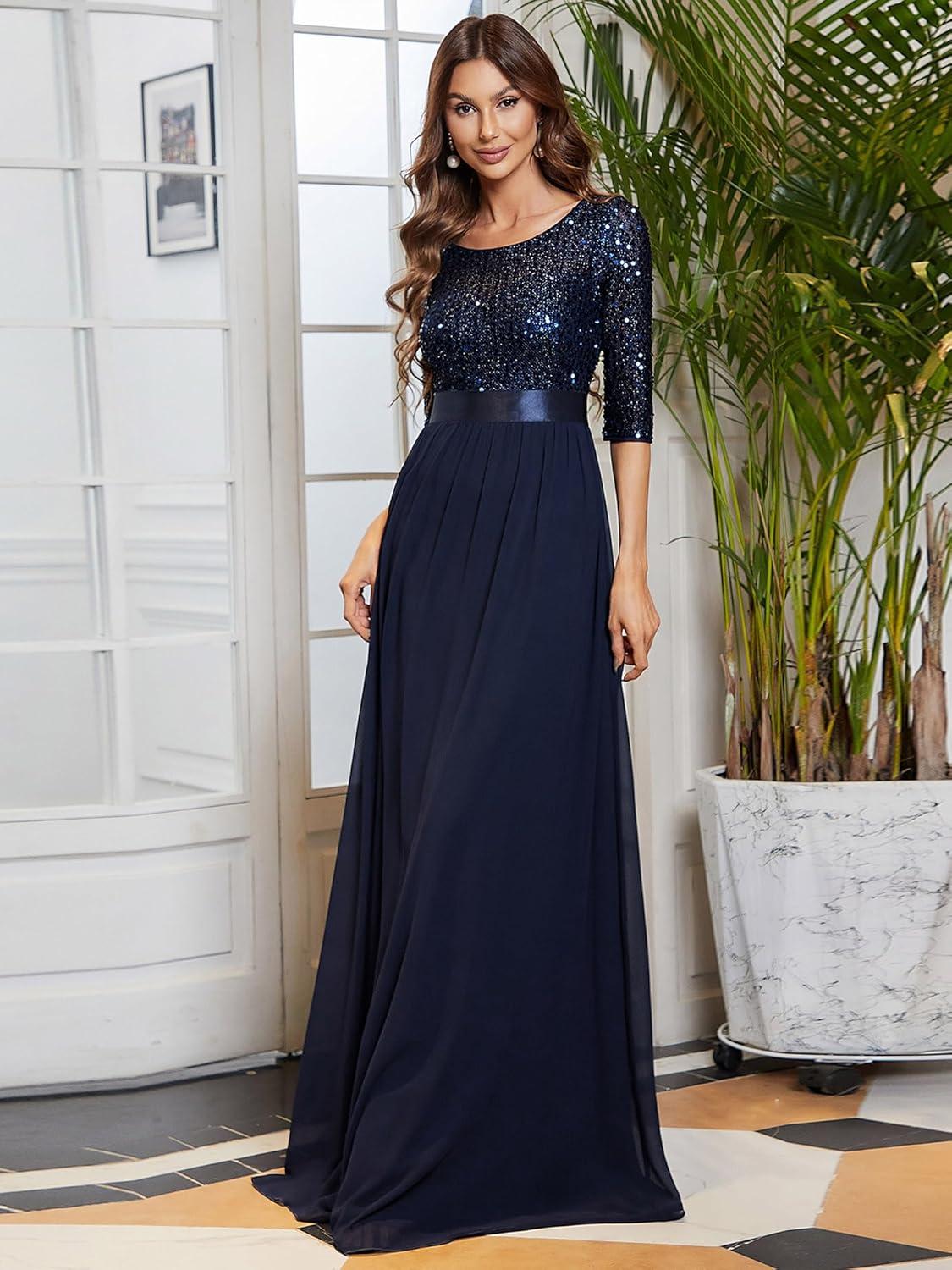 Ever-Pretty Women’s Elegant A Line Crew Neck Half Sleeve Sequin Evening Dress 00683(Navy Blue)