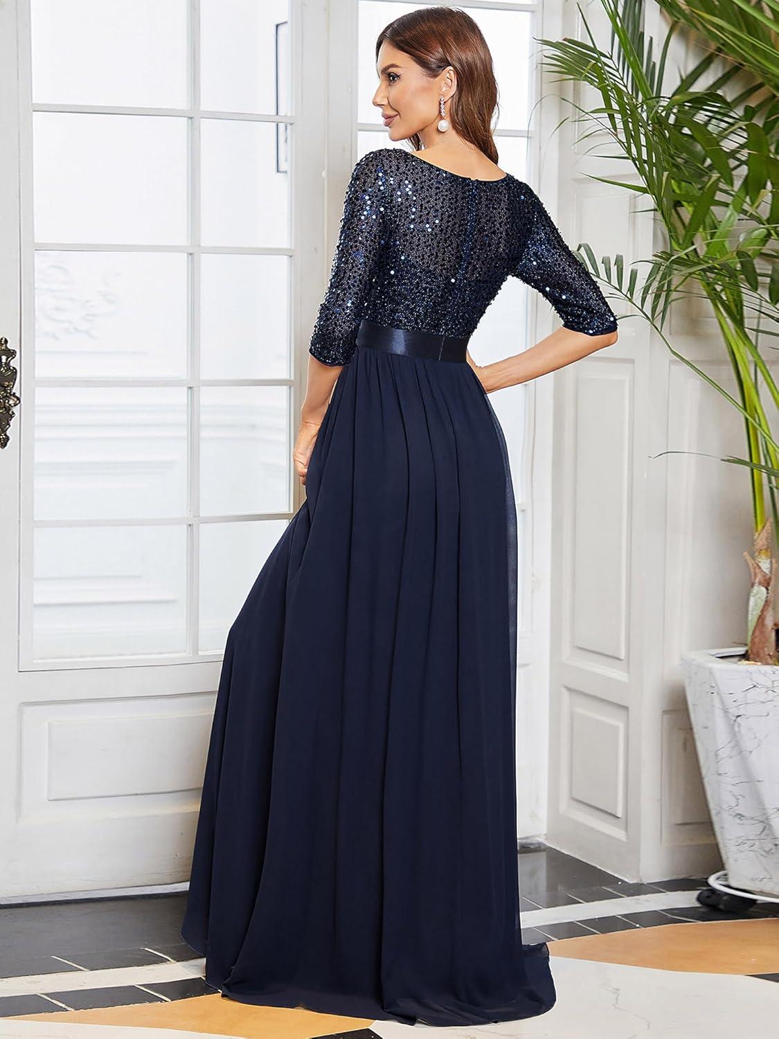 Ever-Pretty Women's Elegant A Line Crew Neck Half Sleeve Sequin Evening Dress 00683(Navy Blue)