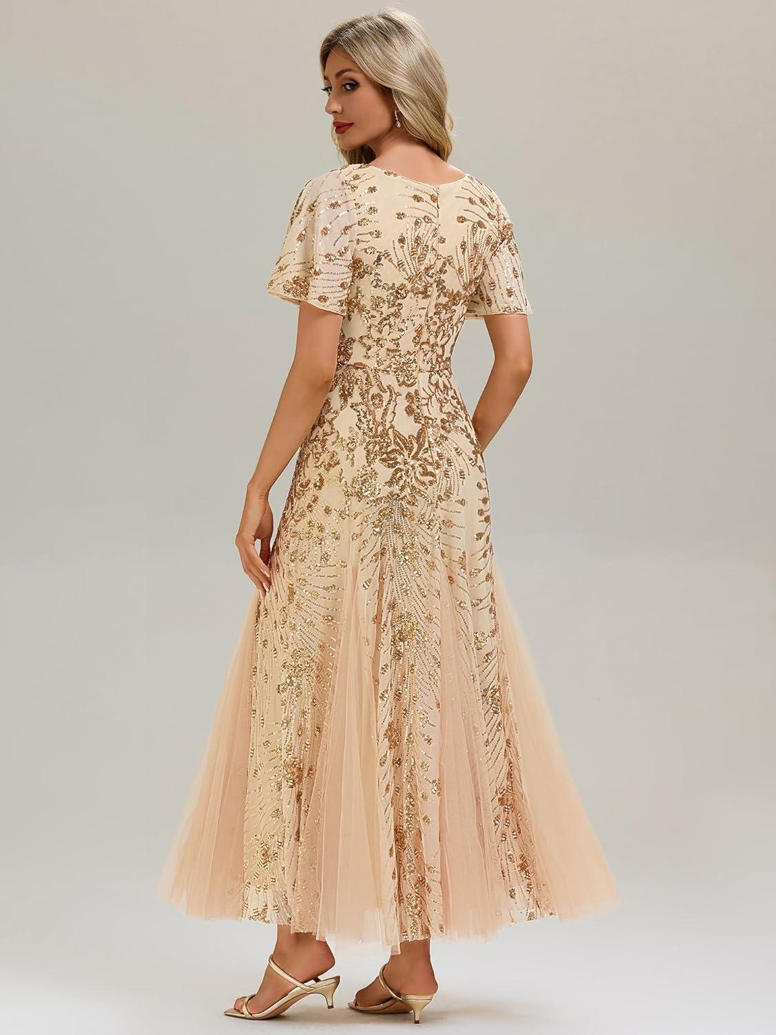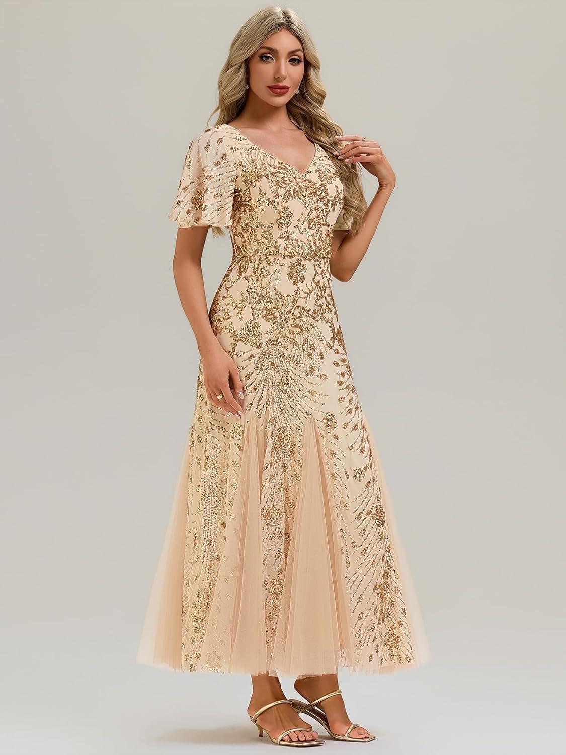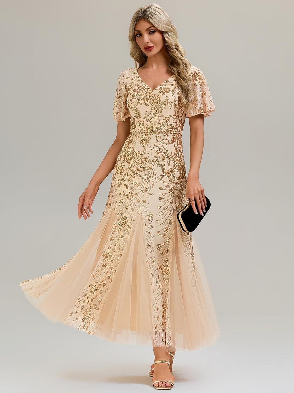 Don’t wait, get up to 50% off on Ever-Pretty Women’s Elegant Mermaid V Neck Short Sleeves Sequin Formal Evening Dress 02547(Gold) during our end-of-season sale event.