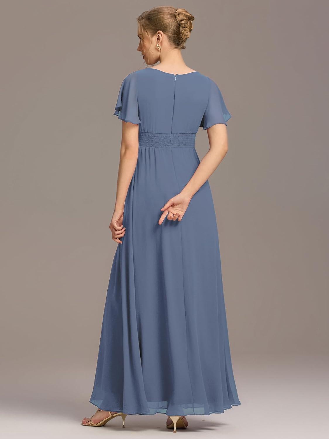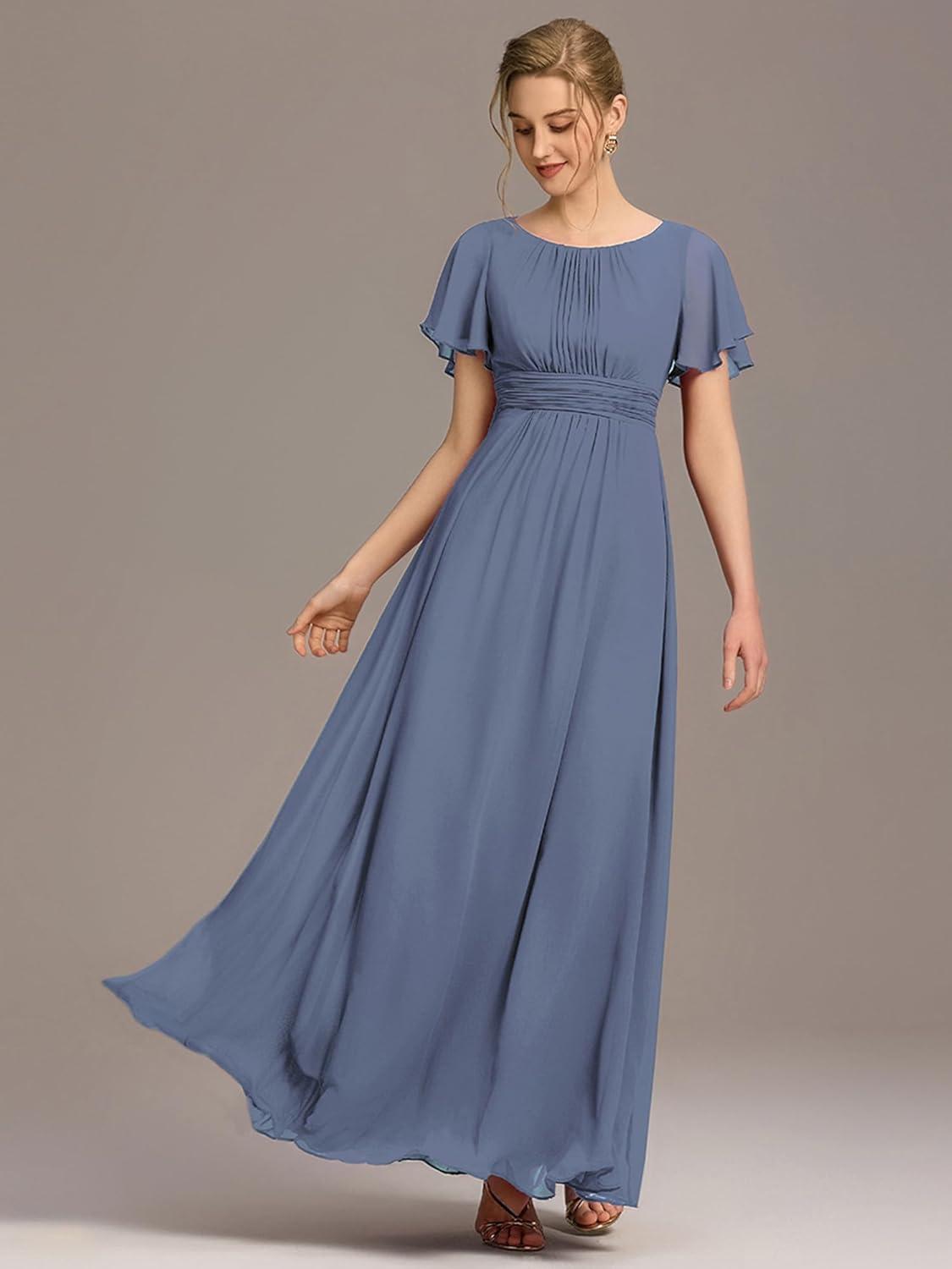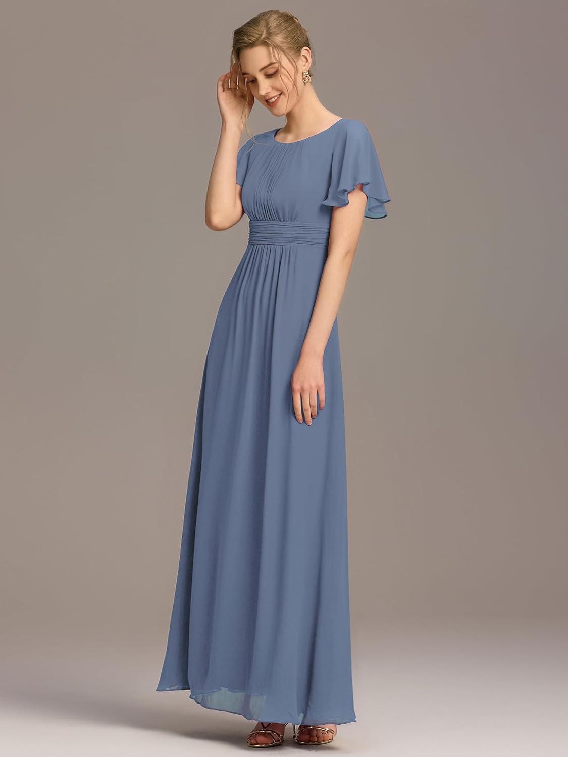 Ever-Pretty Women’s Elegant Round Neck Short Sleeves Chiffon Empire Waist Floor Length Formal Bridesmaid Dress 01840-PH(Dusty Blue)