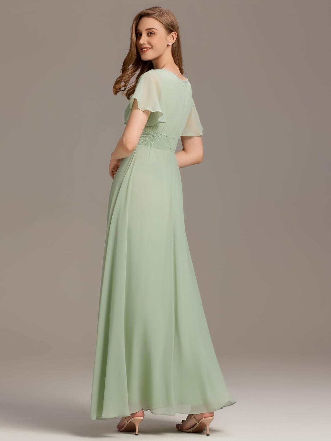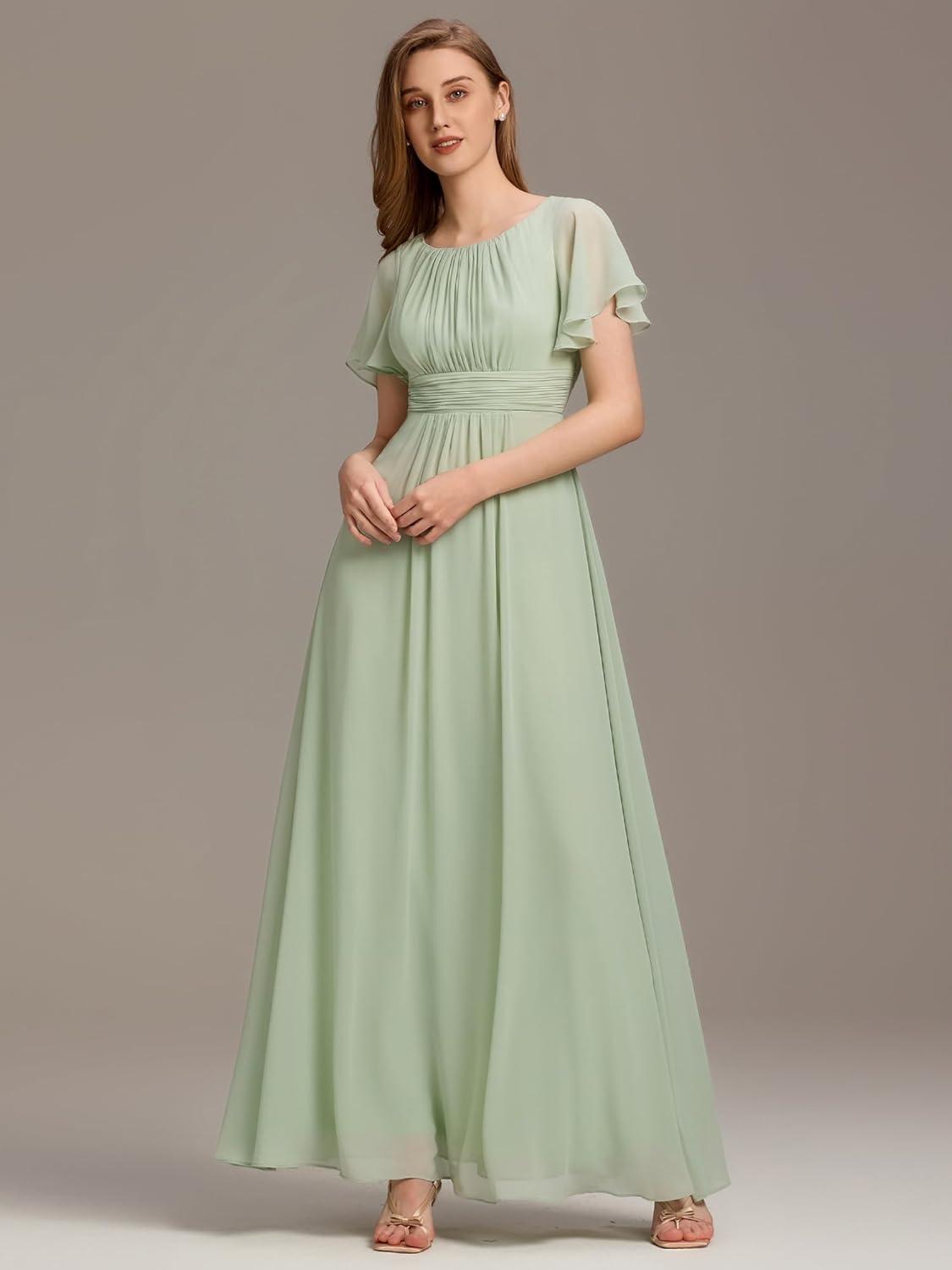 Ever-Pretty Women’s Elegant Round Neck Short Sleeves Chiffon Empire Waist Floor Length Formal Bridesmaid Dress 01840-PH(Eucalyptus Green)