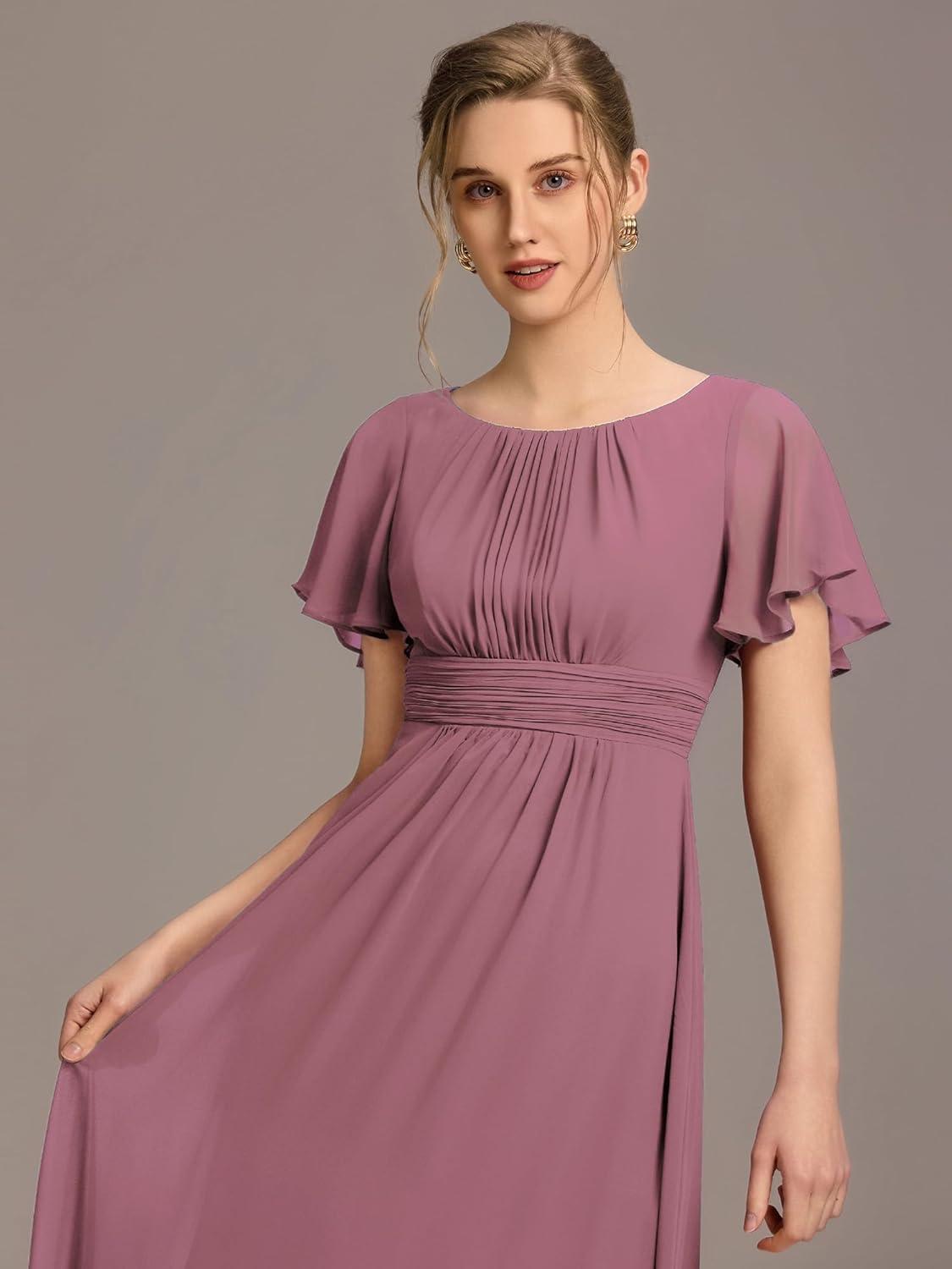 Ever-Pretty Women’s Elegant Round Neck Short Sleeves Chiffon Empire Waist Floor Length Formal Bridesmaid Dress 01840-PH(Orchid)