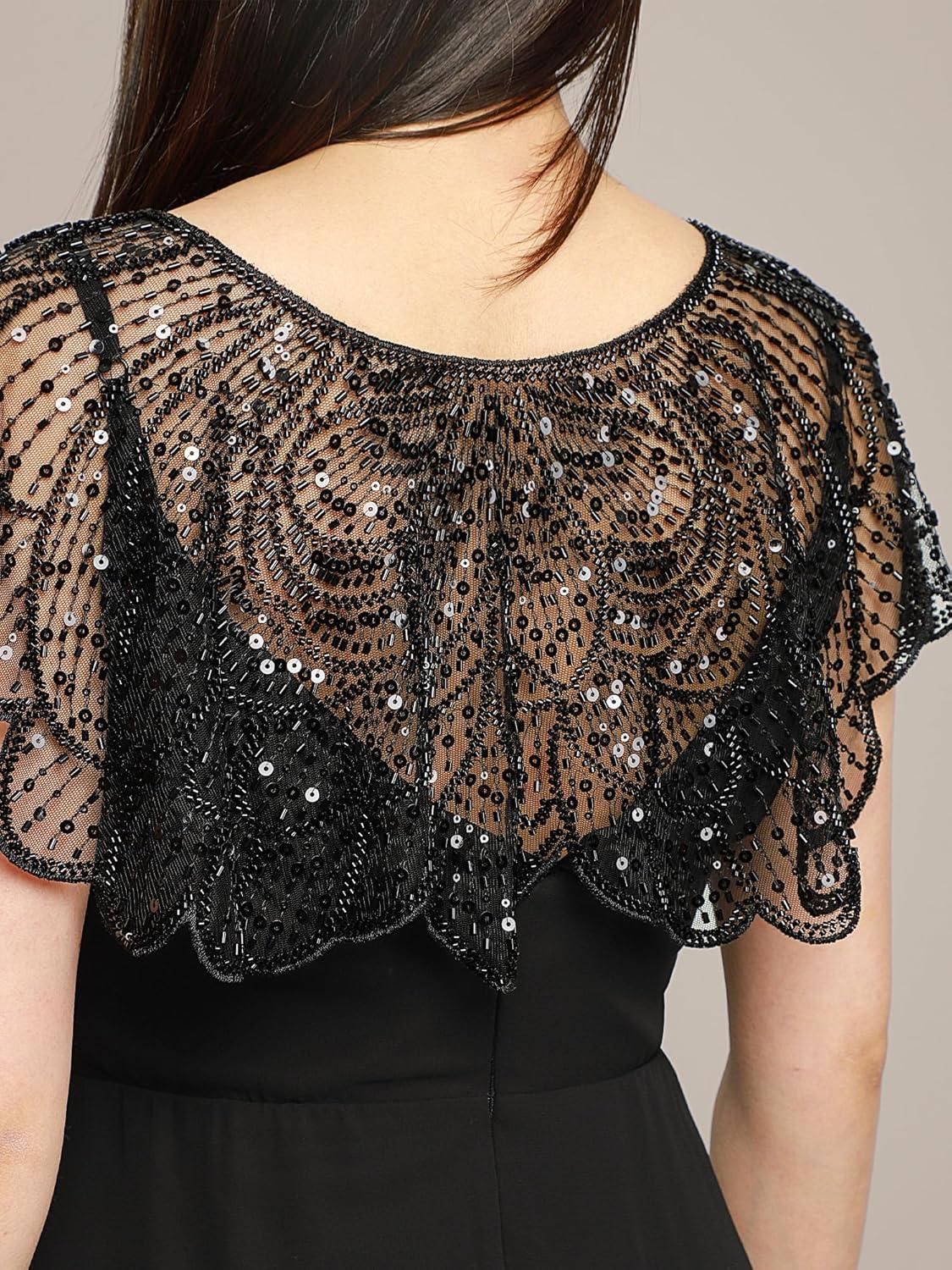 Ever-Pretty Women’s Elegant Sequin Beaded Flapper Evening Shawls for Women Evening Cocktail Party 02719(Black)