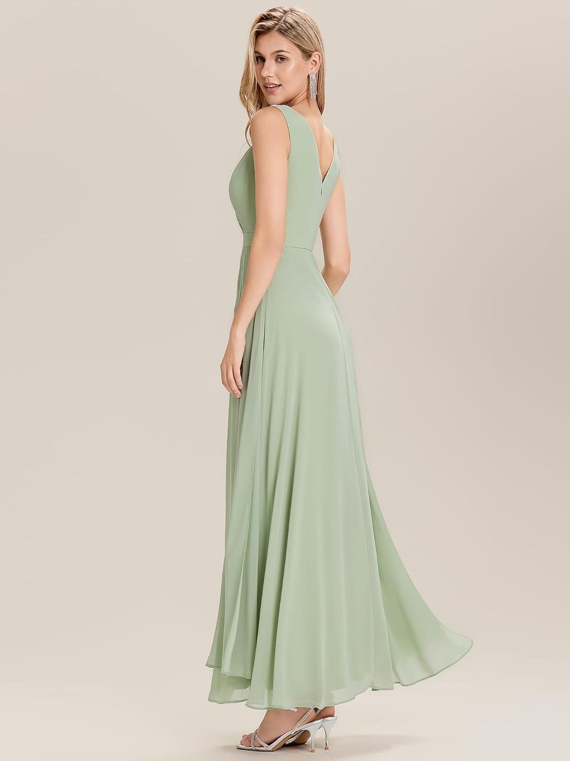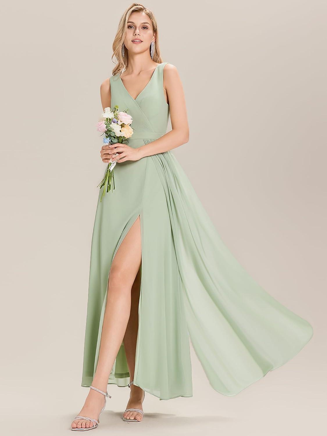 Ever-Pretty Women’s Elegant V-Neck Ruched Draped Split Sleeveless Chiffon A Line Maxi Bridesmaid Dresses 00096(Mint Green)