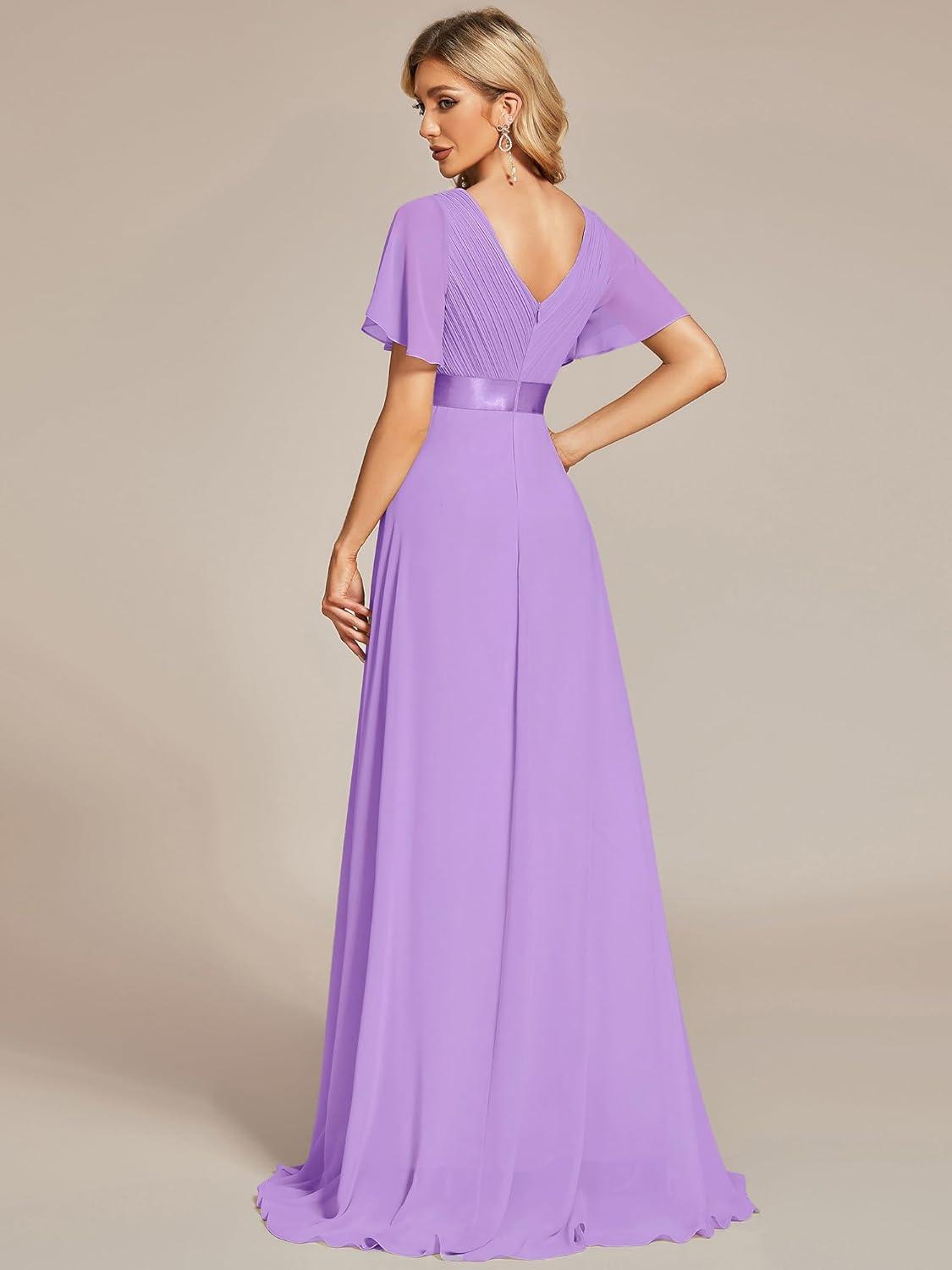 Ever-Pretty Women’s Formal Dress Elegant V Neck Glitter Long Sleeve Mother of The Bride Dresses Evening Gown Burgundy US04(Lavender)