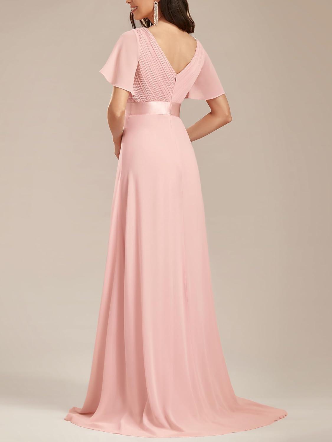 Ever-Pretty Women's Formal Dress Elegant V Neck Glitter Long Sleeve Mother of The Bride Dresses Evening Gown Burgundy US04(Pink)