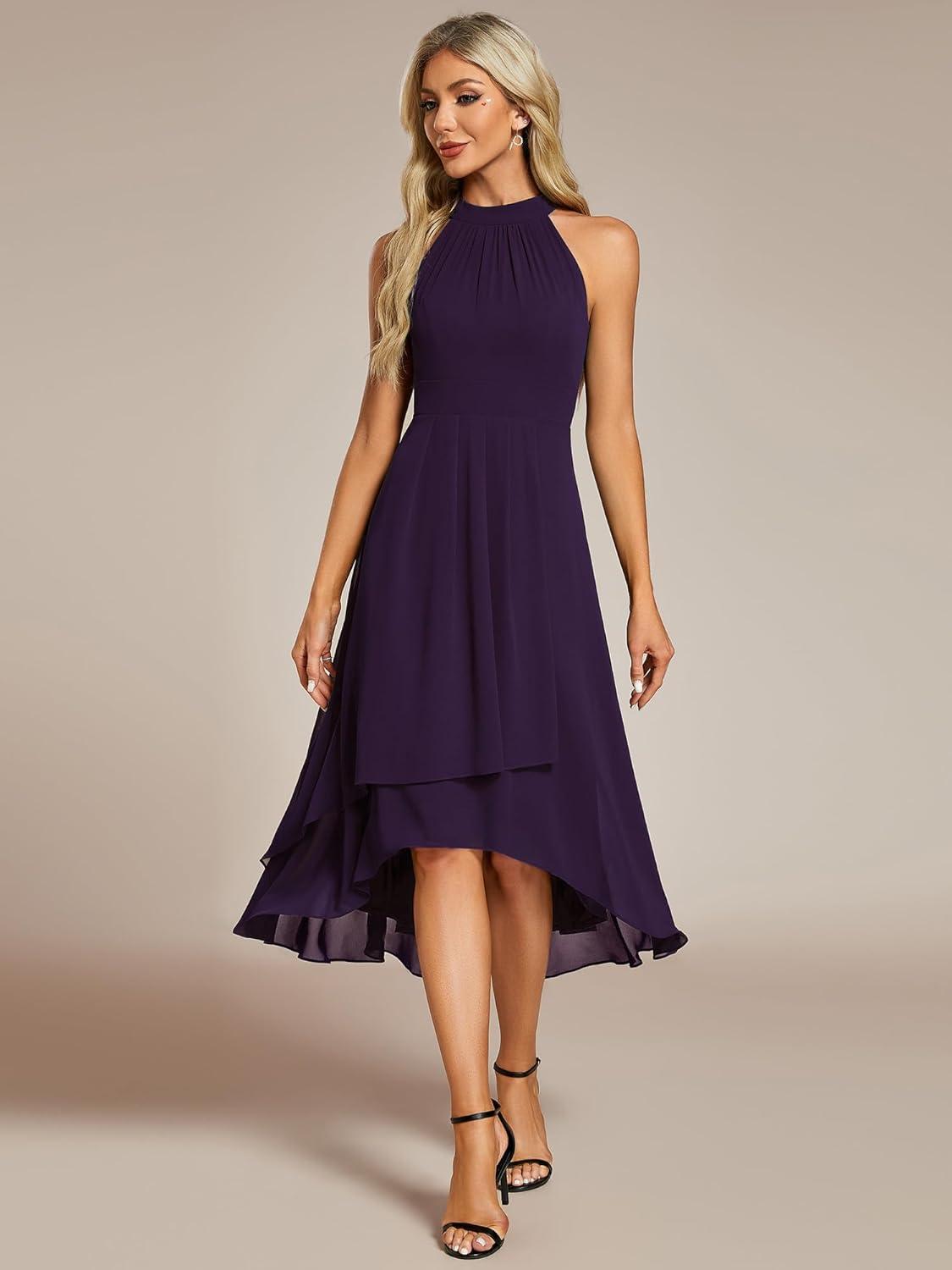 Ever-Pretty Women’s Sexy Halter Neck Pletaed Sleeveless Hi-Lo Chiffon Wedding Guest Dress 31926(Purple)