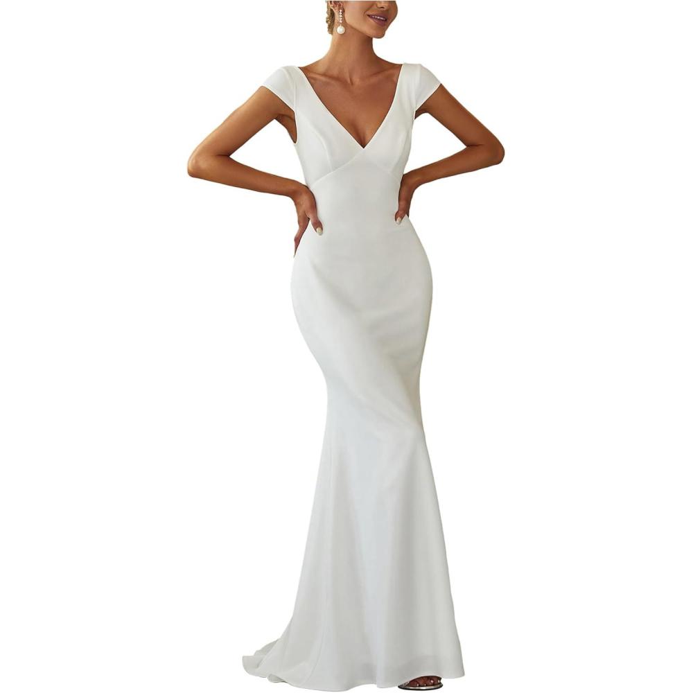 Ever-Pretty Women’s Sleeveless V-Neck Open Back Lace Simple Mermaid Sweep Train Wedding Dress 0171A(White)