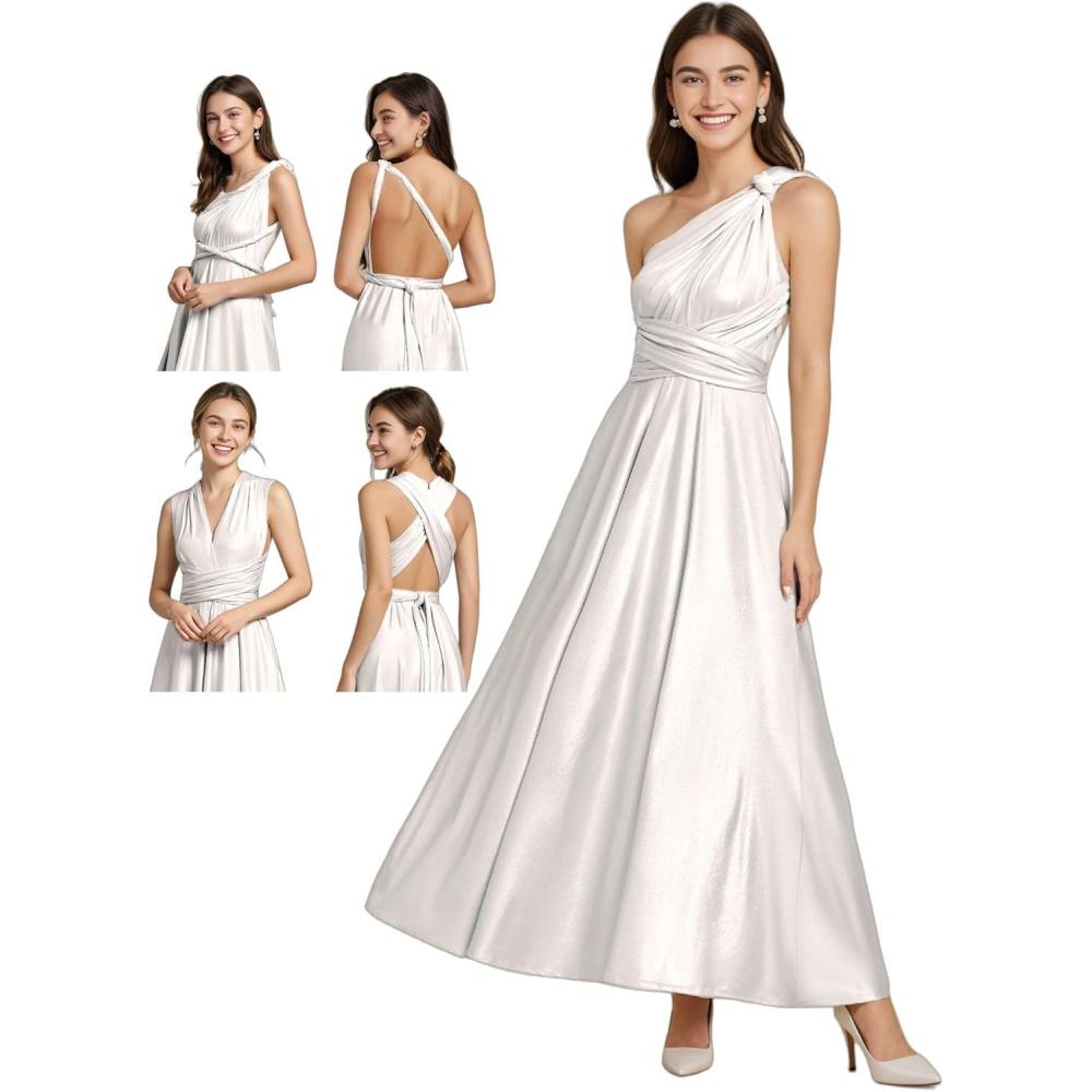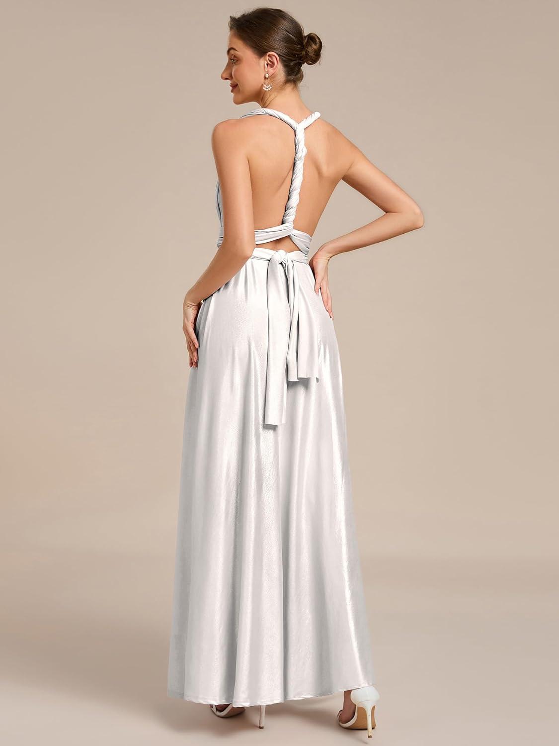 Ever-Pretty Women's Summer Glitter Infinity Dress A-Line Convertible Wedding Guest Dress 02410(Metallic Silver)